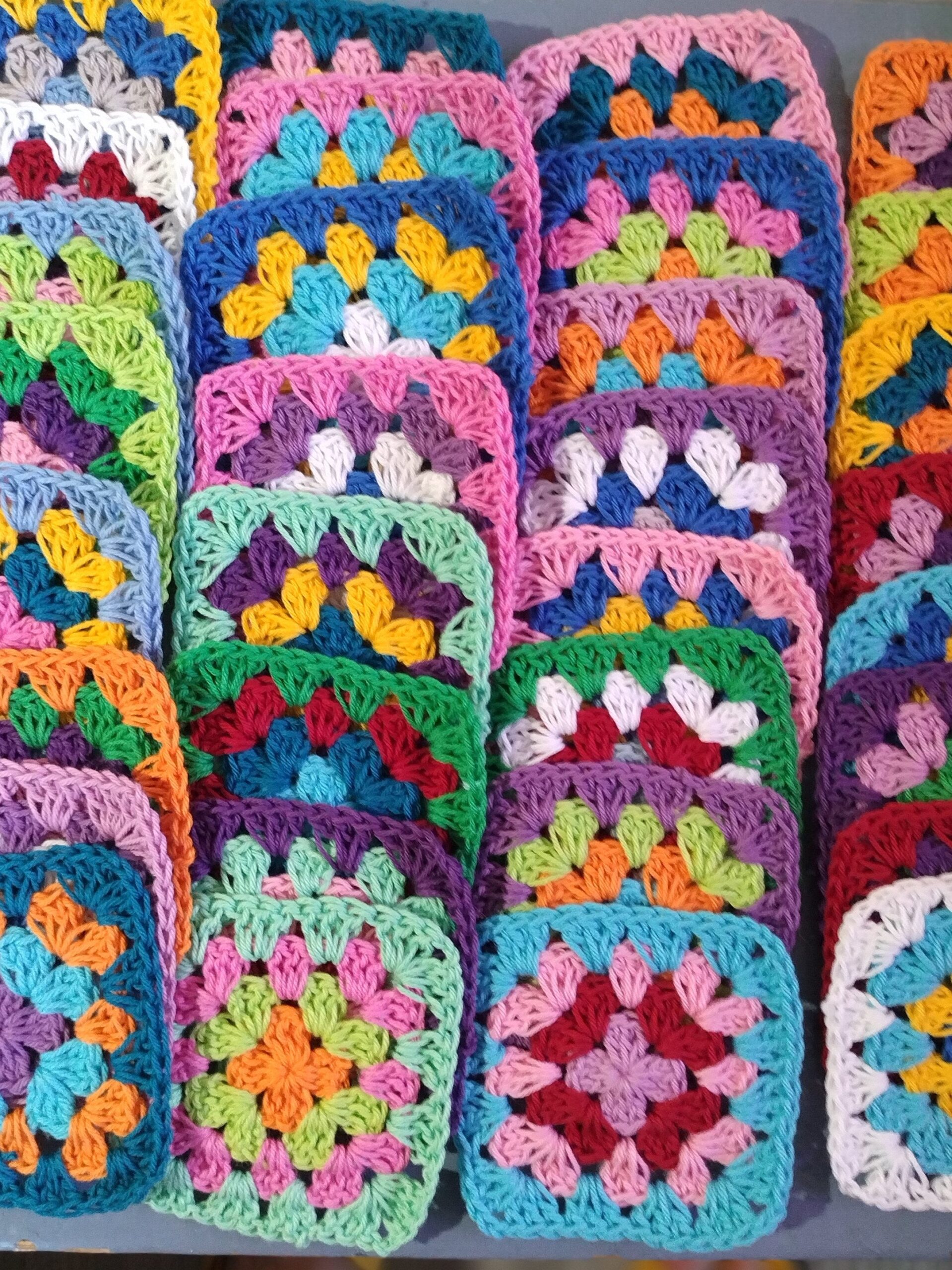 Handgehäkelte Quadrate, Granny Square Handarbeit Material im 12er Set