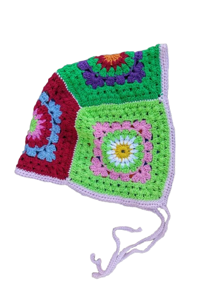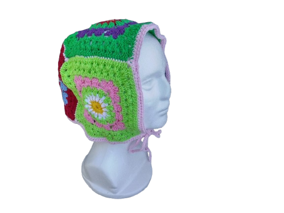 Das klassische Granny Square Muster macht sie zu einem zeitlosen Stück, das von jedem getragen werden kann. Gehäkelte Bonnet sind perfekt für alle, die es schlicht und elegant wollen. Handwäsche mit lauwarmem Wasser und liegend trocknen.