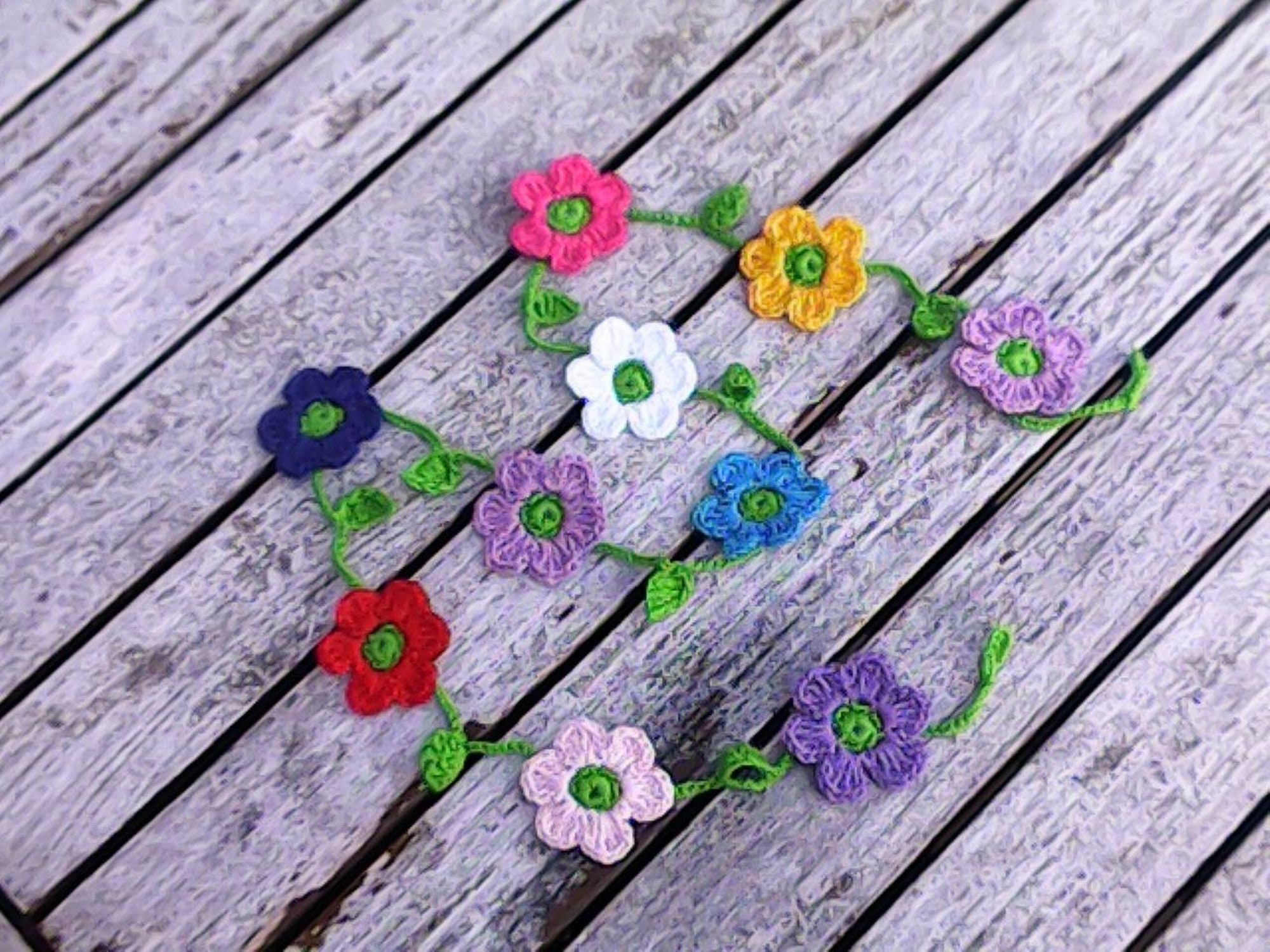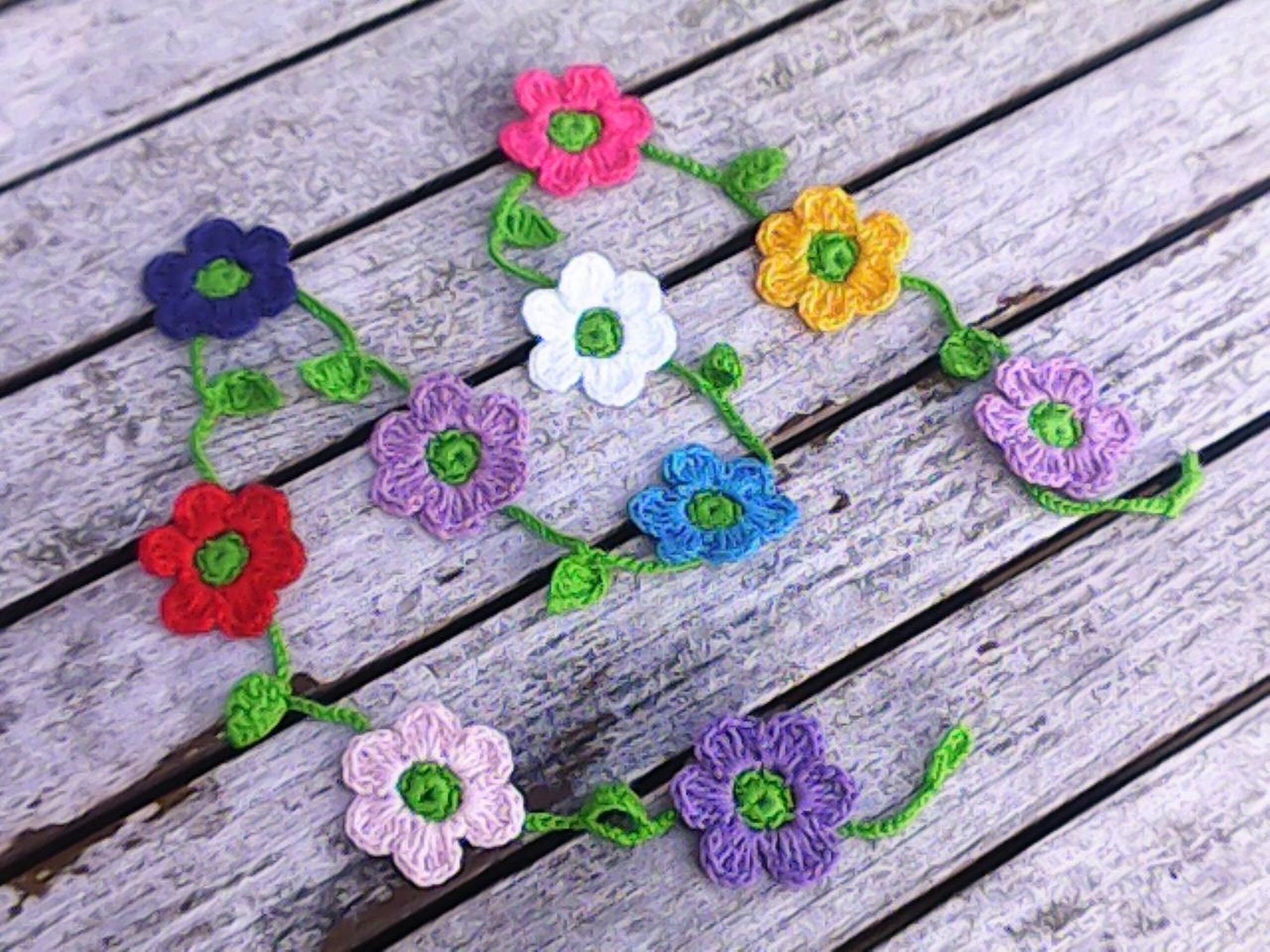 Mini Girlande mit 10 kleinen bunten Blümchen rot lila rosa blau weiß und gelb